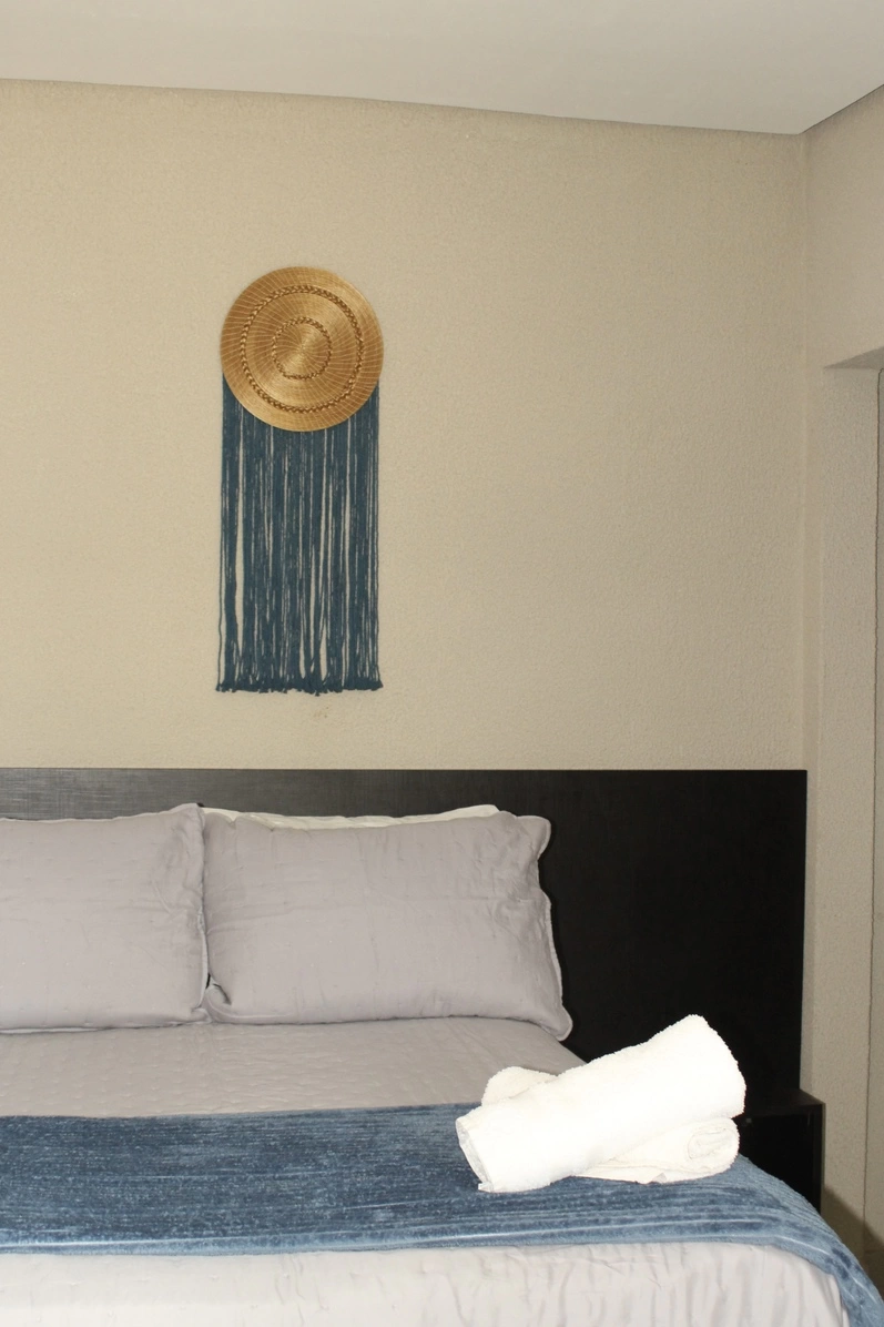 Suítes mobiliadas com cama de casal (138×188), quarto com aproximadamente 10 m², com mobília planejada, smart tv 32′, frigobar. Banheiro privativo, instalações novas e organizadas. Disponibilizamos roupa de cama, lençol, mantinha e toalhas. Acomoda 1 ou 2 pessoas;